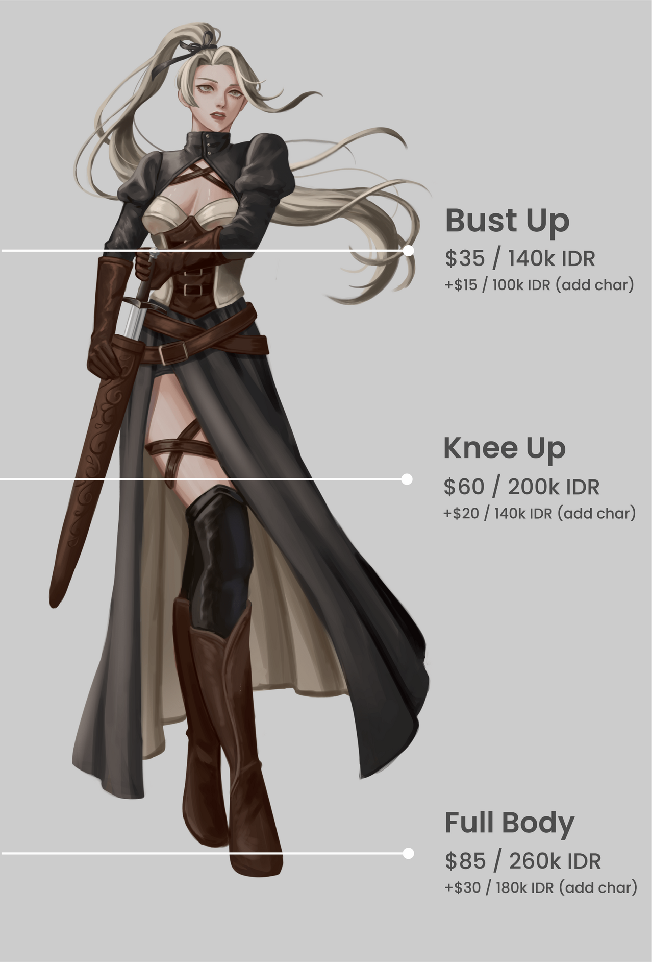 -Complicated Background and more detailed Character charge is according difficulty and will be discussed further privately